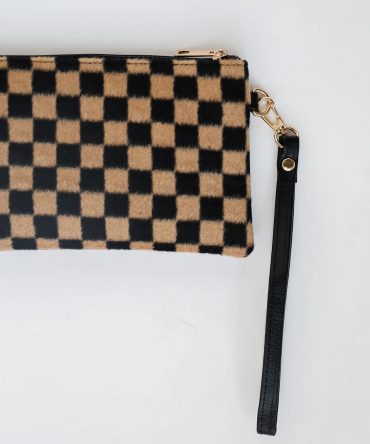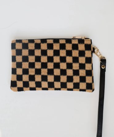 FINAL SALE – Composed Confidence Brown Checkered Wristlet