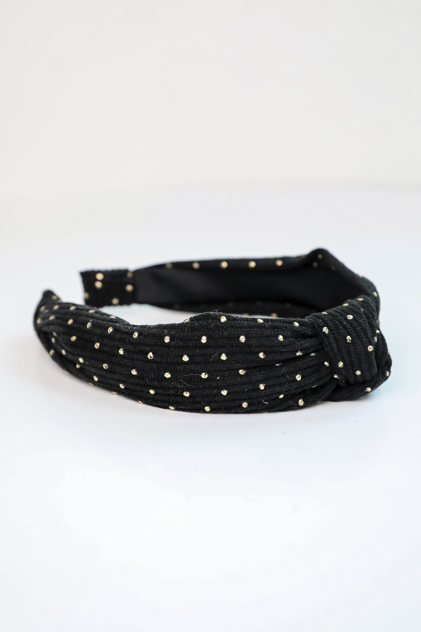 Easily perfect your favorite looks whenever you add the Ideal Sweetness Black Knotted Headband! This adorable headband is designed with a soft knit material with a knot detail on the top & gold dots. Whether you wear it with your favorite little black dress or a classic ribbed bodysuit with denim, either way you’re bound to look darling! Soft Knit Material Gold Dots Knot DetailOne Size | Width 5″