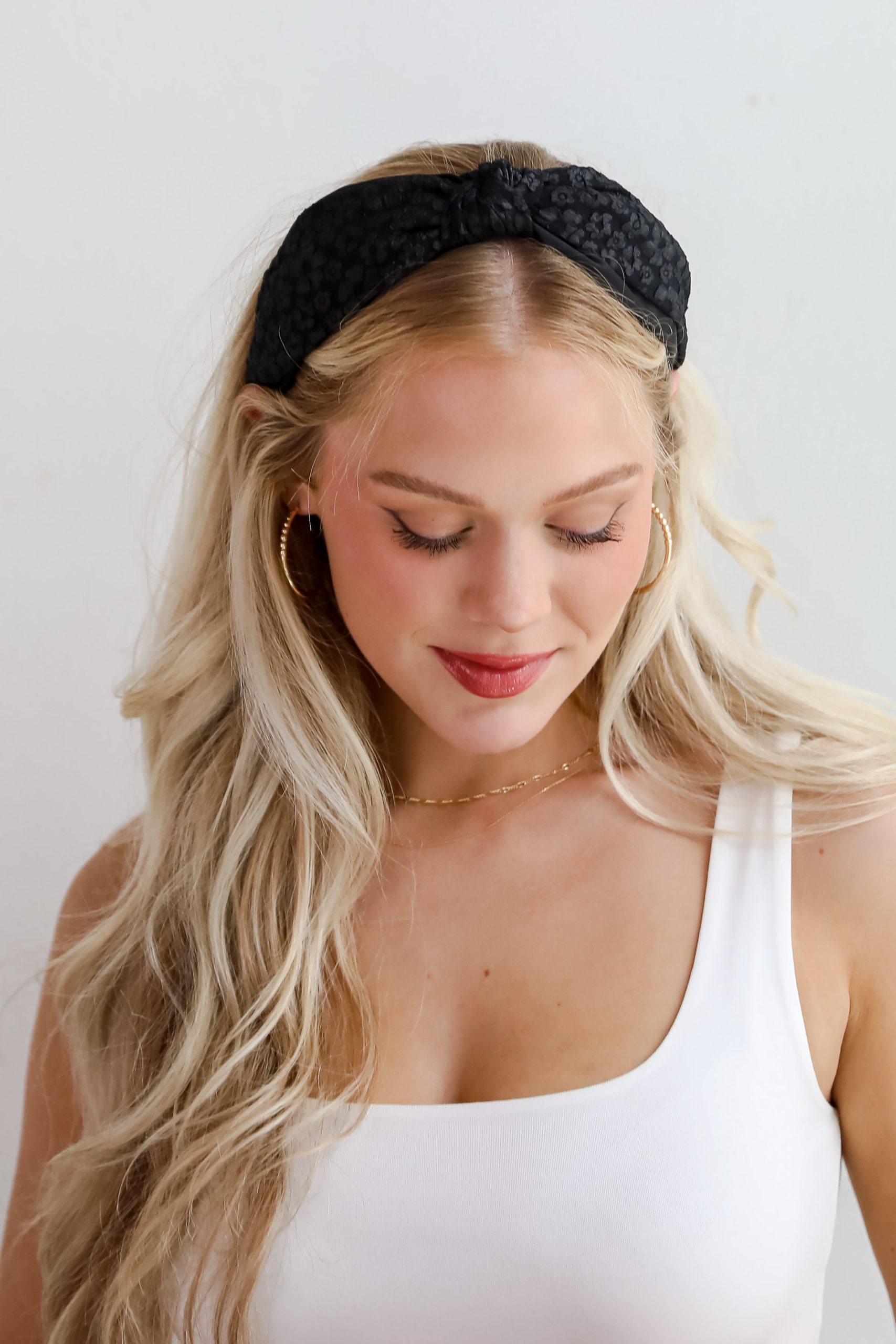 Sincerely Elegant Black Floral Mesh Knotted Headband